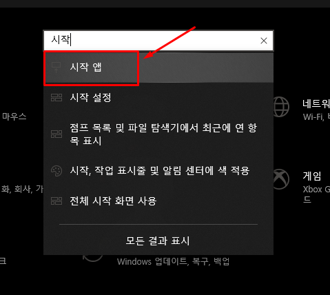 2. 설정앱에서 시작앱 찾는 방법